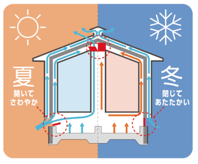 ソーラーサーキット工法では地域の 気候条件に合わせた温湿度コントロールがテーマに。