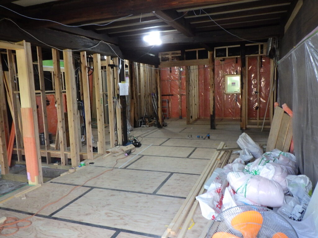 (壁内の断熱施工はまだまだ先になります)