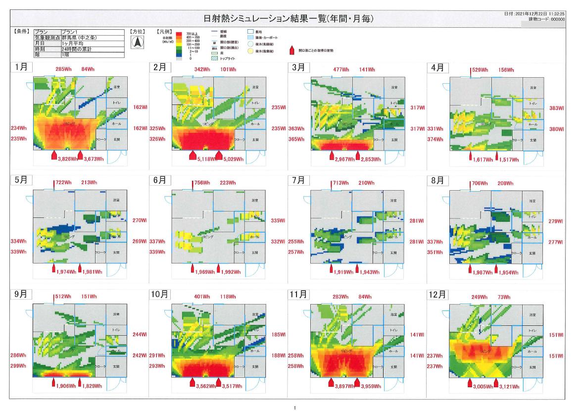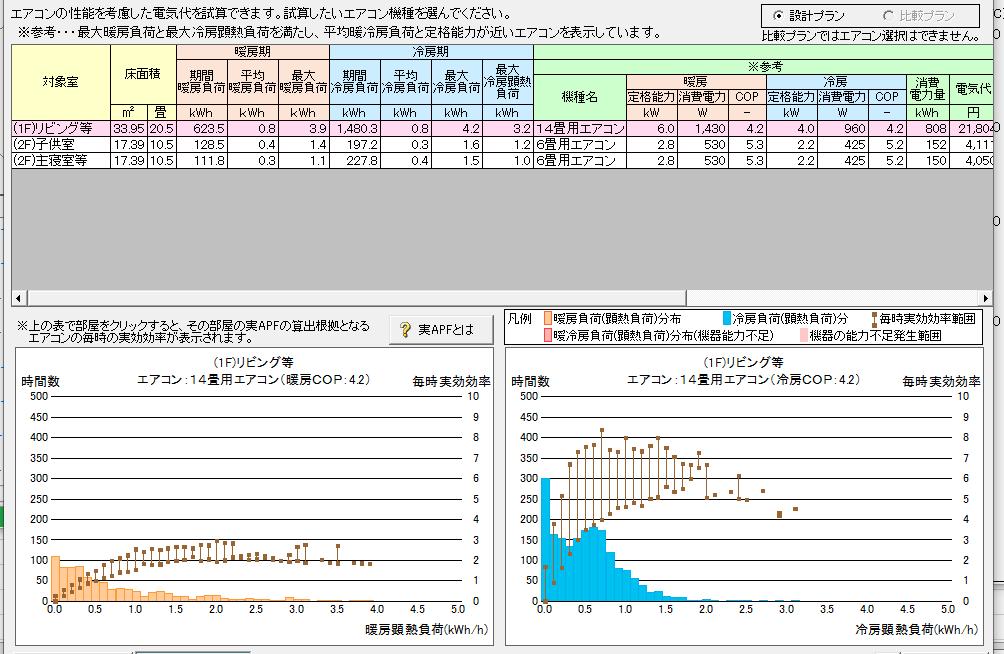 間取りが決まったら、24時間365日の部屋温度を無暖房で一度見える化。玄関及びサッシの仕様・位置などの最終確認を行いながら、冷暖房機器の能力選定や配置も確認します。